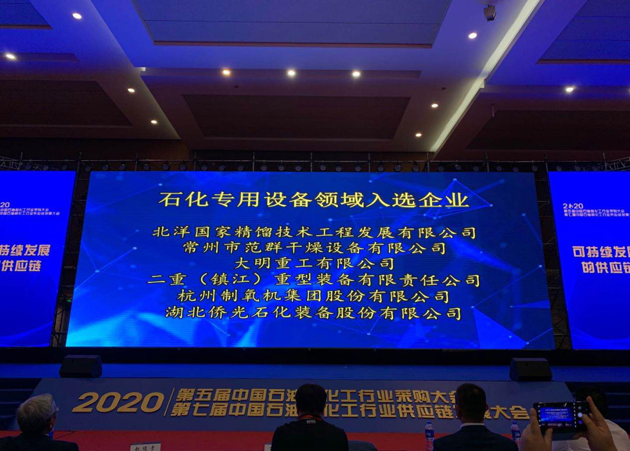 據(jù)悉,本次大會以“可持續(xù)發(fā)展的供應(yīng)鏈”為主題,共持續(xù)3天,參會代表千余人,來自跨國公司、工程公司、典型石化企業(yè)、優(yōu)質(zhì)供應(yīng)商的代表及專家深入分析了中國石化行業(yè)供應(yīng)鏈的現(xiàn)狀和問題,提出了可持續(xù)發(fā)展的方法和路徑,強(qiáng)調(diào)通過供采雙方的協(xié)同發(fā)展實(shí)現(xiàn)合作共贏。會上還發(fā)布了“2020中國石化行業(yè)百佳供應(yīng)商”榜單。常州范群作為國內(nèi)干燥設(shè)備行業(yè)的供應(yīng)商,斬獲2020年石化機(jī)械類“中國石化行業(yè)百佳供應(yīng)商”的殊榮。