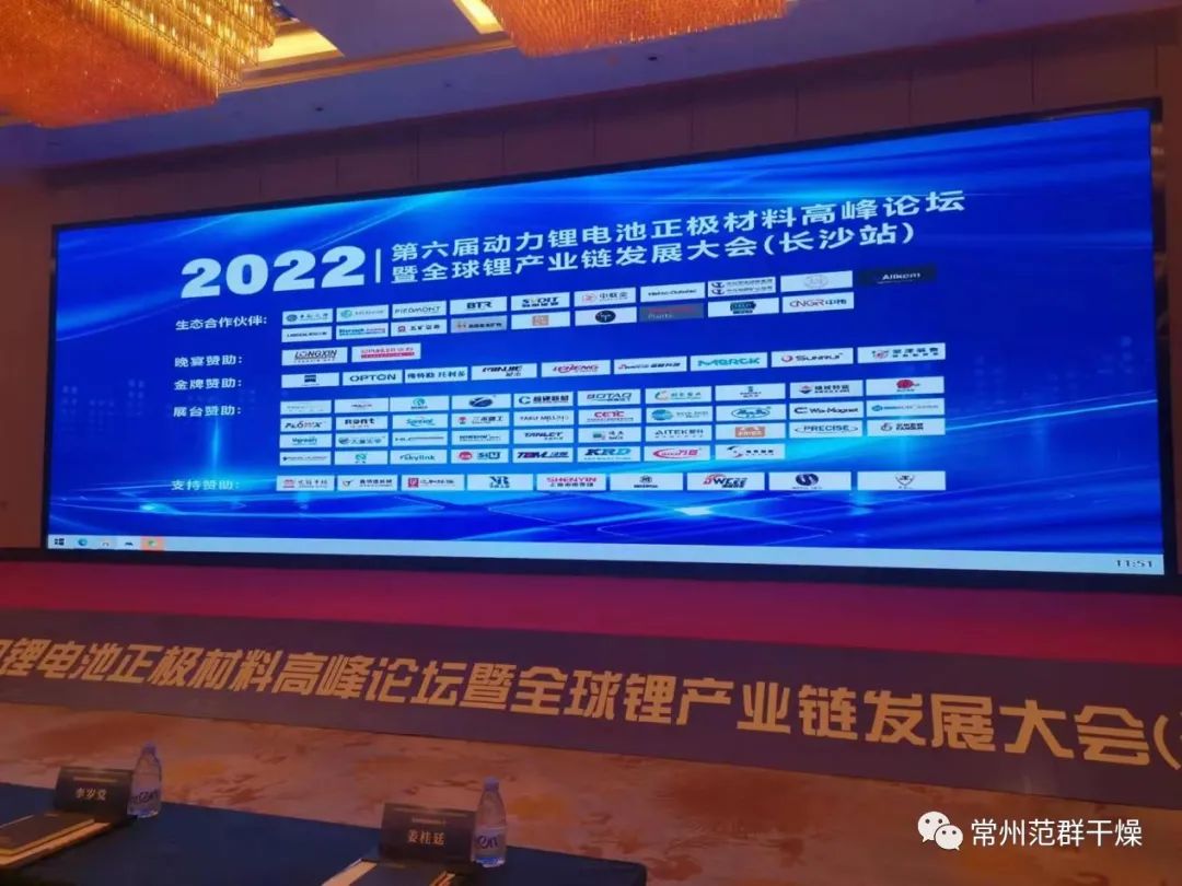 2022年第六屆動力鋰電池正極材料高峰論壇暨全球鋰產業鏈發展大會于2022年2月24日在湖南長沙順利召開,常州范群受邀出席大會。