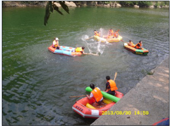 第二天早餐后我們來到了華東地區(qū)最后一篇原始森林、國家級野生動植物自然保護區(qū)石臺牯牛降,游覽參觀國家級自然保護區(qū)、AAAA級景區(qū)石臺牯牛降龍門風(fēng)景區(qū),游覽“嚴家古村” 居住著東漢著名隱士嚴子陵的后裔,典型的徽州民居古建筑保存完好。村中有老磨房、古祠堂和寫著紅軍北上抗日直至大躍進、文化大革命等各個時期標語的“標語墻”;“情人谷”三面環(huán)山,巖壁陡峭,茂林修竹、泉水淙淙,是情侶眷屬的好去處;“四疊飛瀑”象一匹碩大的四疊白練直掛崖壁,如雪似玉,曲折回環(huán),似從天來、蠟燭峰等景點;龍門大峽谷:河馬戲鱷、“龍門潭” 潭水青碧,峽谷幽深,怪石遍布,古木如蓋,有百丈巖、滾石灘等景點,實為大自然創(chuàng)造的“無聲的詩,立體的畫”。 下午赴中國境內(nèi)最美的河流——秋浦河怪潭漂流景區(qū),在素有“詩之河”之美譽的秋浦河上游,河水常年澄碧清澈,兩岸古柳依依,峻峰林立,美景甲天下。全程采用皮劃艇體現(xiàn)參與性和互動性讓大家更深入的親近大自然、體驗大自然,各位同事時而泛舟前行,時而駐足打起水仗,笑聲連連不斷。