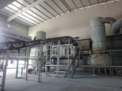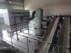 由常州市范群干燥設(shè)備有限公司生產(chǎn)的2萬噸/年白碳黑干燥裝置日前在浙江橫店通過驗收,該裝置由燃煤熱風(fēng)系統(tǒng)、加料系統(tǒng)、閃蒸干燥系統(tǒng)、布袋收塵系統(tǒng)、自動包裝系統(tǒng)等組成。針對白碳黑濾餅含水量高、耐溫高及產(chǎn)品比重小的特點,熱源采用了間接式燃煤熱風(fēng)爐,熱風(fēng)溫度高達500℃以上,進料系統(tǒng)采用皮帶輸送和螺旋加料相結(jié)合,干燥主機采用直徑2米的閃蒸干燥機,直接配套布袋除塵器收集產(chǎn)品,并由自動包裝機完成產(chǎn)品包裝。整套裝置自動化程度高,在人員配置及噸耗等重要指標達到了設(shè)計水平。
