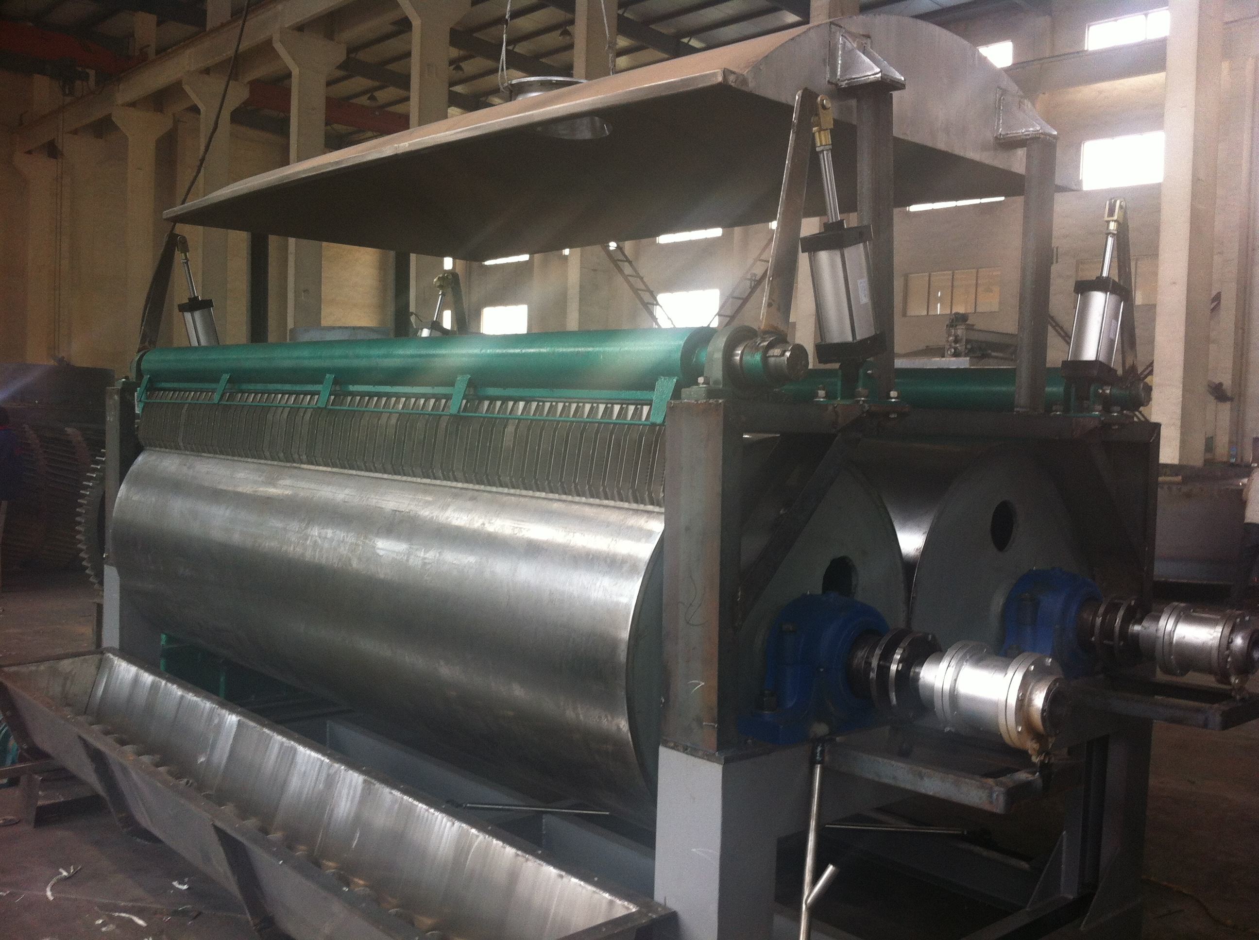為了避免這些干燥設備缺陷的影響,可以通過加翅片換熱器、溶劑回收冷凝器、袋式過濾器、干料返混機構、引風機等輔機,可提高干燥機的生產能力。干燥膏糊狀和熱敏性物料,每塊盤或每組盤能各自加熱或冷卻。
